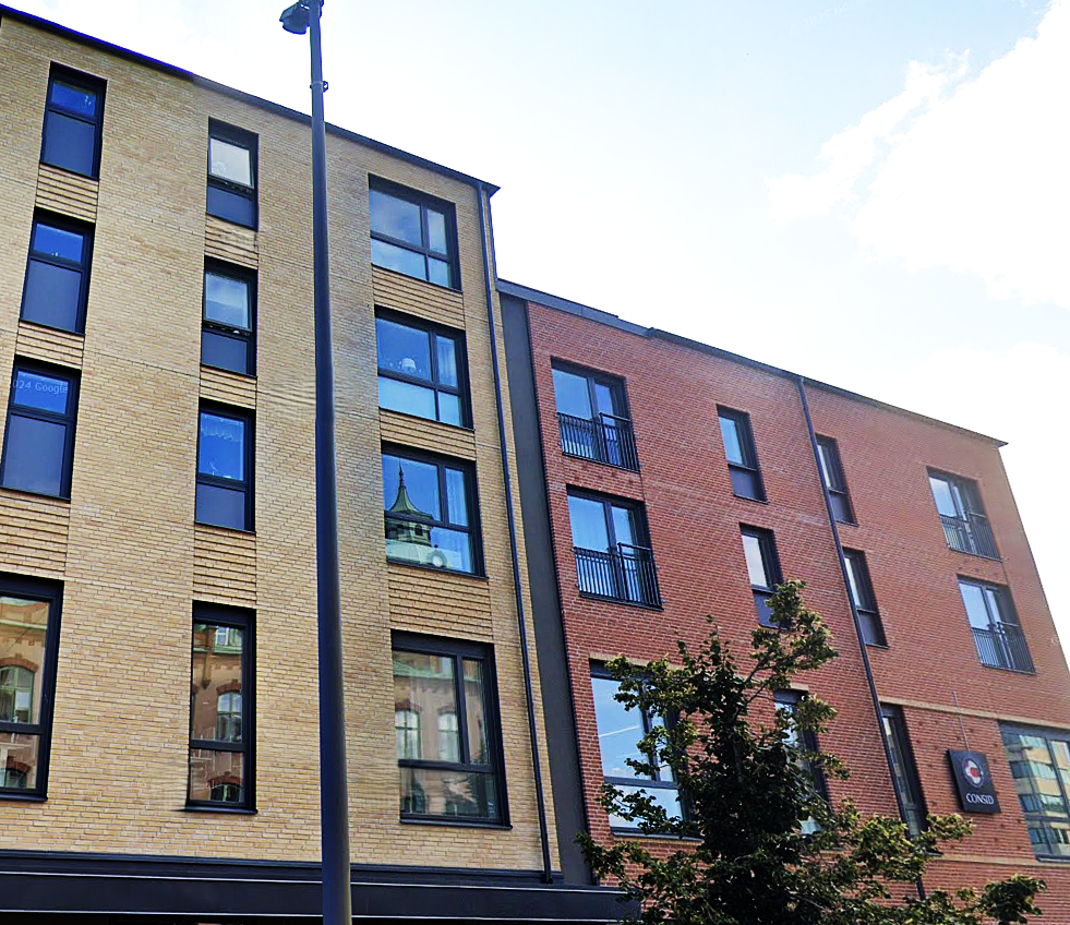 Här utförde vi en putsningsentreprenad, vi använde systemet Caparol och i sina delar Sto Ventec.